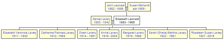 Birth of daughter Elizabeth Veronica Lavery in Bottier, Co. Down.4,1 |